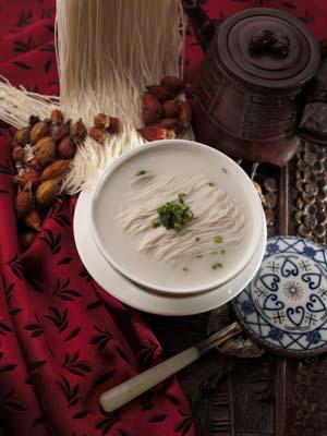 “龍須面”是我國北方傳統風味筵席面點品種之一,是從山東抻面演變出來的精品,至今已有300多年的歷史。相傳明代御膳房里有位廚師,在立春吃春餅的日子里,做了一種細如發絲的面條,宛如龍須,皇帝胃口大開,邊品嘗,邊贊賞,龍顏大悅,贊不絕口。從此,這種炸制的細點便成了一種非常時尚的點心。由于抻面的姿勢,如氣壯山河一般,抻出的面細如發絲,猶如交織在一起的龍須,故名龍須面。