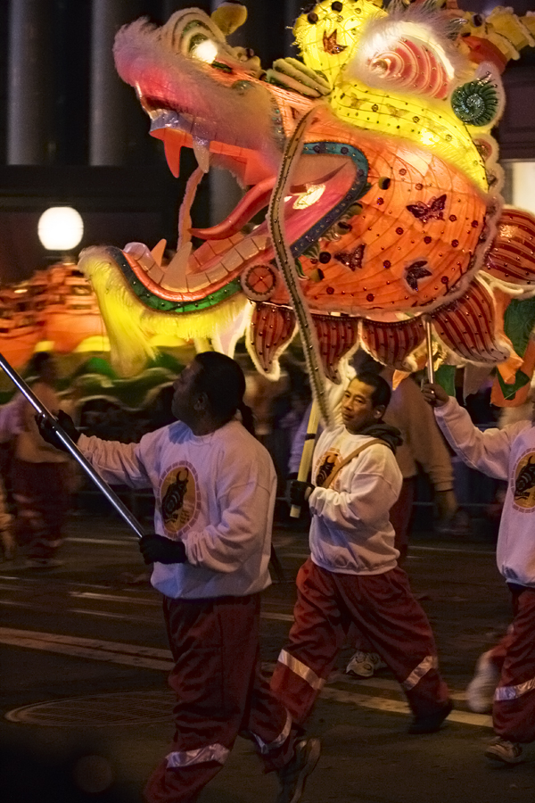 “耍龍燈”的表演,有“單龍戲珠”與“雙龍戲珠”兩種。龍身由許多節(jié)組成,每節(jié)間距約五尺左右,第一節(jié)稱一檔。組成龍身的“節(jié)”,一般都是單數(shù)。(如九節(jié)、十一節(jié)和十三節(jié)的)。龍頭部分也分輕重不同,一般重量約三十多斤。龍珠內(nèi)點(diǎn)蠟燭的稱“龍燈”,不點(diǎn)的稱“布龍”。 在耍法上,各地風(fēng)格不一,各具特色。耍九節(jié)的主要側(cè)重于花樣技巧,較常見的動(dòng)作有:蛟龍漫游、龍頭鉆襠子(穿花),頭尾齊鉆,龍擺尾和蛇退皮等。耍龍中,不論表演那種花樣動(dòng)作,表演者都得用碎步起跑。耍十一、十三節(jié)龍的,主要表演蛟龍的動(dòng)作,就是巨龍追捕著紅色的寶珠飛騰跳躍,忽而高聳,似飛沖云端;忽而低下,象入海破浪,蜿蜒騰挪,煞是好看。 農(nóng)村耍龍燈還有個(gè)習(xí)慣,就是不僅在本村耍,還到外村表演,到鎮(zhèn)上或城市寬闊的街頭、廣場(chǎng)去“賽演”。每當(dāng)新春至元宵節(jié)期間,在此起彼落的鑼鼓聲、鞭炮聲中,各個(gè)民間“舞龍”隊(duì)大顯身手,引動(dòng)萬人空巷。
