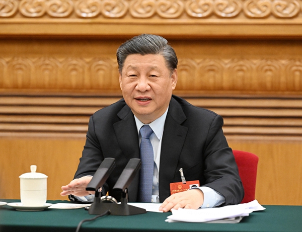 3月6日,中共中央總書記、國家主席、中央軍委主席習近平看望參加全國政協十四屆一次會議的民建、工商聯界委員,并參加聯組會,聽取意見和建議。新華社記者 謝環馳 攝