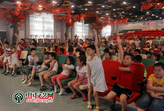 在光明小學的禮堂里,青年演員毛曉彤向同學們講述了電影的歷史,如電影如何制作、如何演變,并結合電影的發展歷程,播放了盧米埃爾兄弟制作的《水澆園丁》、卓別林的《城市之光》等電影片段,讓同學們認識了電影由黑白到彩色、由無聲到有聲的發展歷程。課堂上,毛曉彤向同學們提問電影有哪些類型、蒙太奇是什么、幕后人員有哪些等問題,同學們都熱情高漲,積極踴躍地舉手發言。