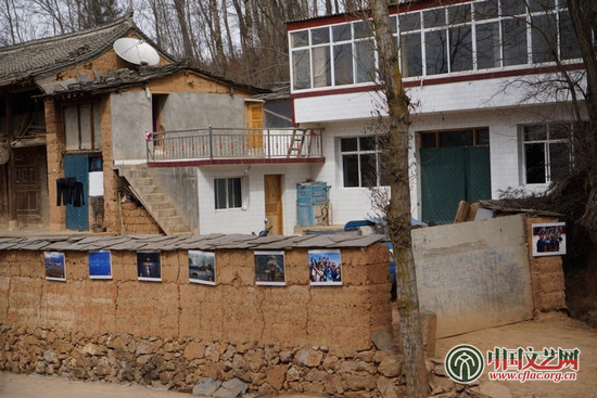 村民家院墻外懸掛的“中國夢影像公益廣告”