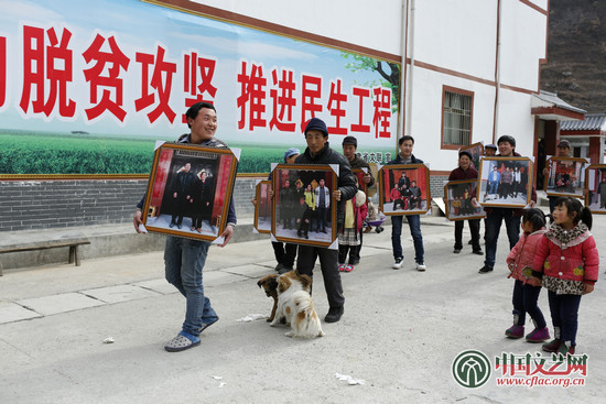 大年初十,攝影家還專程趕往元旦期間另一個全家福拍攝地——琵琶鎮張壩村,將裝裱好的全家福送來,村民聞訊趕來,一時間村子沸騰了。