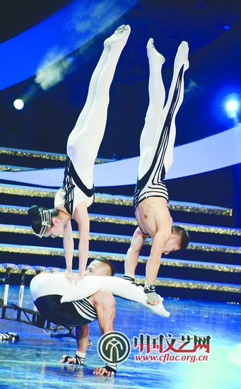 中國(guó)雜技團(tuán)表演雜技《協(xié)奏·黑白狂想——男子技巧》