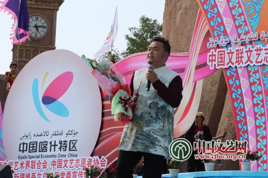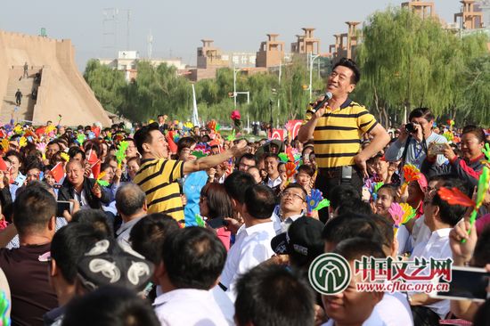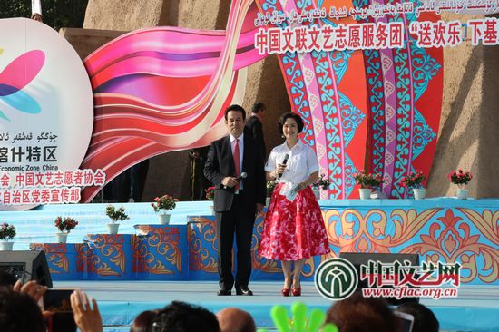 9月8日上午,由中國文聯、中國文藝志愿者協會、新疆維吾爾自治區黨委宣傳部主辦的“尋夢絲路·暢想喀什——中國文聯文藝志愿服務團‘送歡樂下基層’慰問演出”在新疆喀什古城廣場舉行。