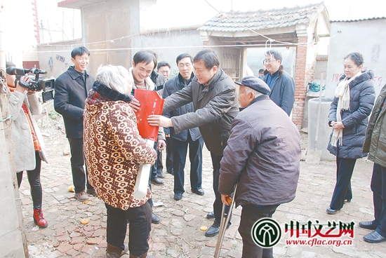 2015年2月,安徽省文聯(lián)領(lǐng)導(dǎo)赴山西太和縣舊縣鎮(zhèn)大張村慰問老黨員和困難群眾