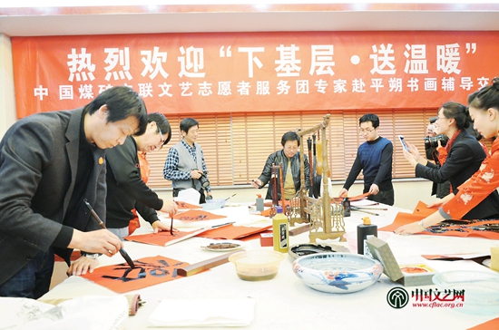 2015年1月,煤礦文聯書法志愿者赴山東能源新礦集團,為職工送春聯送祝福,還舉辦了書法講座。5月,煤礦文聯文藝志愿服務團赴山西陽泉煤業集團,曲藝、舞蹈、音樂、美術、書法等文藝志愿者們在井口表演文藝節目、創作并贈送書畫作品,還進行了美術、書法創作輔導和舞蹈、音樂、曲藝講座。11月上旬,煤礦書法志愿者赴山西省煤礦工會為山西省煤炭行業文化干部進行書法輔導講座和創作交流。