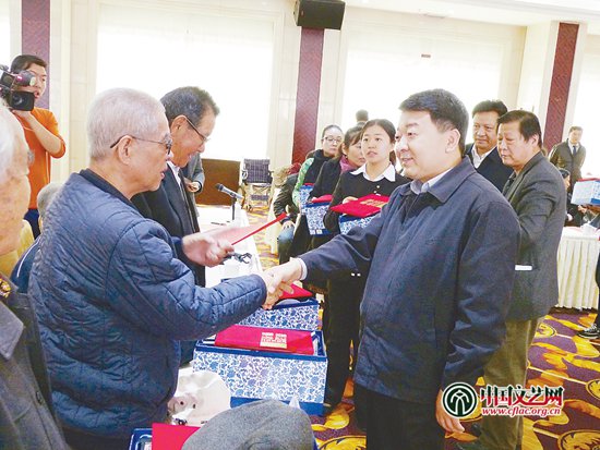 青海省委常委、宣傳部部長張西明為文藝家頒發證書