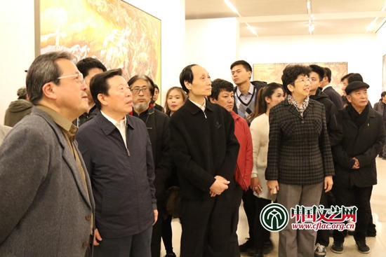 中國文聯(lián)主席孫家正,中國文聯(lián)黨組書記、副主席趙實,中宣部原副部長、全國政協(xié)學習與文史委員會副主任翟衛(wèi)華,中央文史研究館常務(wù)副館長、中國文聯(lián)副主席馮遠參觀畫展 中國文藝網(wǎng) 段冉 攝