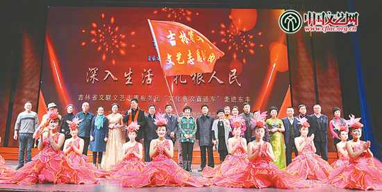 文藝為了人民,屬于人民。五年來,吉林省文聯發揮優勢、聚焦民生,組織了一系列貼近群眾的文藝惠民活動,吉林省文聯文藝志愿服務團把豐富多彩的文藝志愿服務送到千家萬戶。2011年,舉辦“龍騰吉林——過文化大年”系列活動;2012年,舉辦紀念毛澤東同志《在延安文藝座談會上的講話》發表70周年系列活動;2013年,舉辦“百名藝術家進鄉村結對子、種文化”活動;2014年,舉辦“到人民中去”文藝志愿者服務日主題系列活動;2015年,示范性開展了“重走抗聯路”通化、白山行系列惠民活動;2016年,舉辦了吉林省第三屆市民文化節“祖國萬歲”大型詩歌朗誦音樂會;同時,每年舉辦多次“送歡樂下基層”“文化惠民直通車”等文藝惠民活動。這些精心打造的文藝活動充實了城鄉群眾的精神生活。