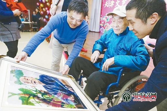 2016年1月,天津攝協舉辦“天津市百歲老人主題攝影展”,文藝志愿者贈送百歲老人照