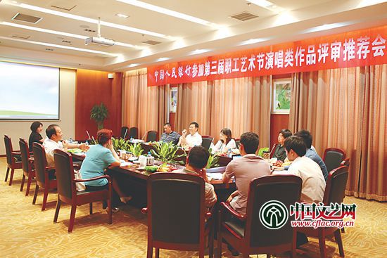 2012年,中國人民銀行參加第三屆職工藝術(shù)節(jié)演唱類作品評審?fù)扑]會現(xiàn)場