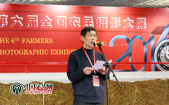 王瑤在致辭中表示,十年前在十六屆五中全會吹響新農村建設的大背景下,中國攝協推出了“新農村建設紀實影像工程”的新舉措。十年來工程得到了中央領導、中宣部、中國文聯、農業部和社會各界的大力支持。共有一萬多位攝影人參與,其中農民攝影家四千余人,共收到19.4萬余幅攝影作品。十年來取得的成就主要體現在三個方面:一是讓農民朋友們分享了改革開放、尤其是文化繁榮發展的成果。二是這些影像見證了新農村建設的成果,新農村的巨大變化。三是農民攝影大展也紀錄了攝影事業繁榮發展的進程。中國攝協還為農民打工子弟的孩子建立了攝影曙光學校,讓孩子從小就拿起相機,紀錄生活中的點滴。她表示,今后中國攝協將一如既往地響應習近平總書記的號召,尤其是總書記在文藝工作座談會上的講話和十次文代會上講話,團結引領廣大的攝影人,深入生活、扎根人民,在火熱的新農村建設中拍攝更多更好的攝影作品,做“中國夢”的紀錄者,做“美麗中國”的建設者。