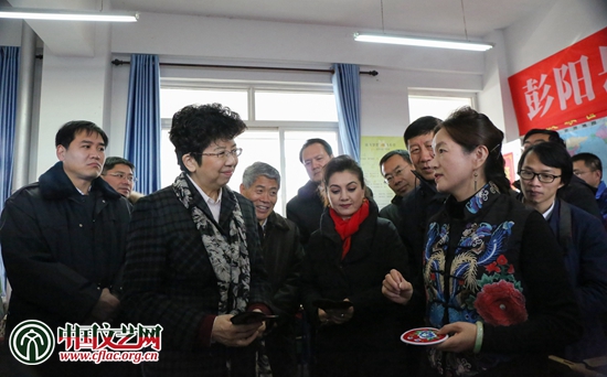 隨后,趙實、李前光一行調研了當地文藝扶貧情況,并在彭陽縣第四中學與參加“文藝扶貧奔小康”志愿服務行動民間文藝培訓班的文藝志愿者、學員代表進行了座談。在彭陽縣第四中學開辦的“文藝扶貧奔小康”培訓班包括手工編織班、刺繡剪紙班、插花藝術班等,由中國文聯文藝志愿服務中心、寧夏文聯主辦。參加培訓的周邊群眾正專注地按輔導老師指導的工序忙碌著。趙實仔細地詢問了培訓班的情況,姚建萍、王紅川、毛麗嫻、李夏音、伏兆娥等為培訓班授課的民間藝術家介紹了情況。趙實說,培訓班讓人深受教育、備受鼓舞,得到很多的啟發。許多藝術家不計名利地參加到文藝志愿服務行動中來,充滿熱情地、毫無保留地傳授技藝絕活,令人欽佩和感動。未來希望充分發揮中國文聯和各全國文藝家協會的優勢,爭取讓更多的文藝工作者參與進來,不忘初心、不忘為人民服務的職責和使命,更好地把文藝扶貧、文藝傳承和提高人才素質結合起來,幫助老區人民脫貧致富奔小康。