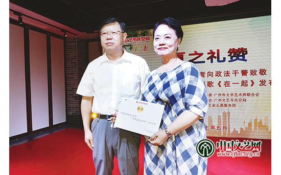5月22日,在第4個中國文藝志愿者服務日來臨之際,由廣州市文聯、廣州市委政法委主辦的“夏之禮贊——廣州文藝志愿者向政法干警致敬暨廣州文藝志愿者主題歌《在一起》發布活動”在289藝術園區廣州文藝市民空間舉行。近百位廣州藝術家志愿者以畫像、書寫、攝影、演出等豐富的形式,向廣州政法干警致敬,為政法干警量身定制了一場精彩紛呈的文化盛宴。同時,廣州文藝志愿者主題歌《在一起》發布,歌曲由詞曲作家、廣州市音協主席陳小奇創作。