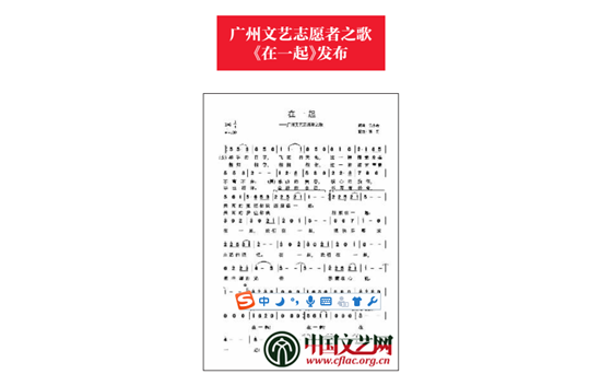 本次發布會的另一重頭活動是發布廣州文藝志愿者主題歌《在一起》。為廣泛動員文藝家、文藝工作者、文藝志愿者,積極踐行社會主義核心價值觀和“愛國、為民、崇德、尚藝”的文藝界核心價值觀,大力開展文藝志愿服務活動,廣州市文聯、廣州文藝志愿者協會邀請陳小奇創作了這首歌,并選定在2017年“5·23”中國文藝志愿者服務日來臨之際發布。