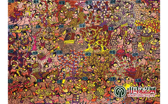 農民畫是人民大眾的藝術,“中國夢歸根結底是人民的夢”。在歷史發展進程中,中華傳統文化中民間藝術在倫理教化、審美娛樂、人格培養、情感交流等方面發揮了重要作用,這些豐富的文化內涵在農民畫創作中仍保存著活態的種子并不斷發展。王朝聞先生曾在上世紀80年代評價農民畫家是用他們自己所掌握的樸素語言——“好看”、“開心”和“自己也會笑出來”表達他們對于形式美的摯愛,“隨心走,選有趣的‘畫’”,農民畫正是以樸素醇厚的語言歌頌勞動,禮贊生活,傳遞著昂揚向上的精神活力。今天,廣大農民畫創作者更加自覺自如地運用傳統民間繪畫的造型和色彩表達方法,更加深刻真摯地觀察和表現農村的生活體驗和審美情感,表達自信樂觀的生活態度,創作了一批有夢想、有溫度、有情感、有感染力的作品,帶給我們很多鼓舞和感動。希望農民畫在發展過程中,扎根農村生活,堅守民間特色,突出“農民敘事”,不斷創作新作品,表現新生活,不斷提高作品的思想性、藝術性、傳播力和影響力。
