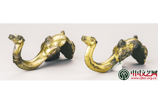 鎏金青銅駱駝形鈕鐘架構件(西漢)