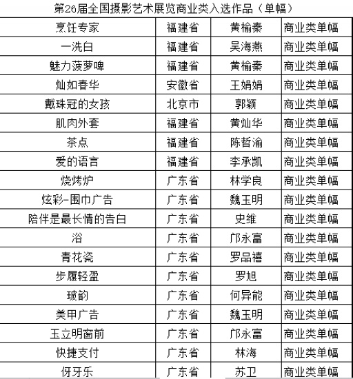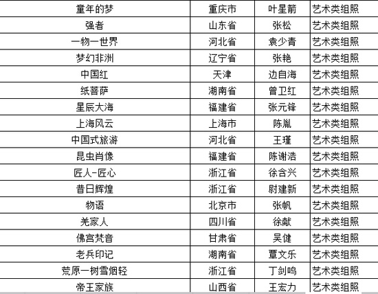 中國文學(xué)藝術(shù)界聯(lián)合會、中國攝影家協(xié)會主辦的第26屆全國攝影藝術(shù)展覽,收到來稿作品94273件(212065幅),其中:紀(jì)錄類作品53842件,藝術(shù)類作品38275件,商業(yè)類作品1954件,多媒體類作品202件。本屆全國攝影藝術(shù)展覽經(jīng)過初評、終評選出擬入選作品418件。