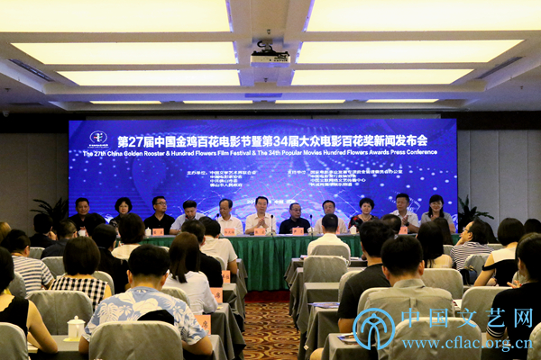 8月9日,第27屆中國金雞百花電影節(jié)暨第34屆大眾電影百花獎新聞發(fā)布會在京舉行。圖為發(fā)布會現(xiàn)場。中國文藝網(wǎng) 韓雪竹 攝
