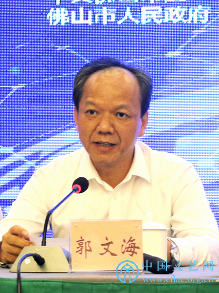 8月9日,第27屆中國金雞百花電影節(jié)暨第34屆大眾電影百花獎新聞發(fā)布會在京舉行。圖為佛山市委常委、宣傳部部長、順德區(qū)委書記郭文海通報本屆電影節(jié)籌備工作情況。中國文藝網(wǎng) 韓雪竹 攝