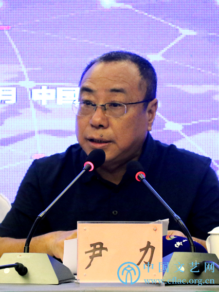 8月9日,第27屆中國金雞百花電影節(jié)暨第34屆大眾電影百花獎新聞發(fā)布會在京舉行。圖為中國影協(xié)副主席尹力宣讀第34屆大眾電影百花獎候選名單。中國文藝網(wǎng) 韓雪竹 攝