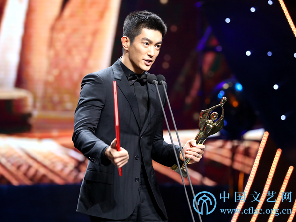 11月10日,第34屆大眾電影百花獎頒獎典禮暨第27屆中國金雞百花電影節閉幕式在廣東佛山舉行。圖為最佳男配角獎獲得者杜江發表獲獎感言。中國文藝網 韓雪竹攝