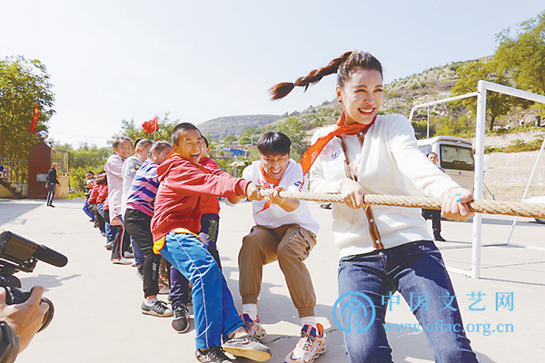 在榆林馬塔留守兒童小學,藝術(shù)家們與孩子們一起游戲