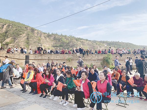 在榆林楊家溝,觀眾們揮舞國旗,熱情洋溢地觀看演出