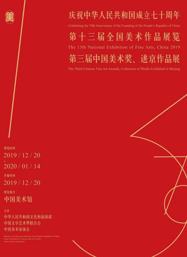 創(chuàng)辦于1949年的全國美術(shù)作品展覽,每五年一屆,由中華人民共和國文化和旅游部、中國文學(xué)藝術(shù)界聯(lián)合會、中國美術(shù)家協(xié)會共同主辦,至今已走過70年的風(fēng)雨歲月。每屆全國美展的舉辦,都以視覺審美的方式見證和凝固了新中國建設(shè)、發(fā)展與繁榮的輝煌歷程,精彩作品的匯聚,書寫了新中國美術(shù)進行現(xiàn)代性變革與轉(zhuǎn)型的藝術(shù)史。第十三屆全國美展,既是當(dāng)代美術(shù)家們?yōu)橹袊?dāng)代藝術(shù)史譜寫新篇,更是為慶祝新中國成立70周年,書寫中國人民繼續(xù)奮斗當(dāng)代視覺史詩的有力踐行。