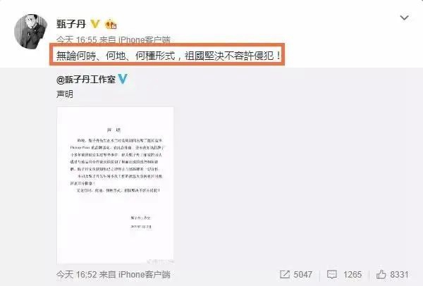 甄子丹堅定地在微博上轉發
