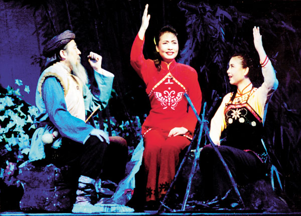 王:6場(chǎng)民族歌劇《黨的女兒》是為了慶祝建黨70周年而創(chuàng)作的。由于時(shí)間緊、任務(wù)重,為確保創(chuàng)作的質(zhì)量,調(diào)集了全軍最優(yōu)秀的創(chuàng)作力量,除了我和張卓婭以外,擔(dān)任作曲的還有印青、王錫仁、季承、方天行。當(dāng)時(shí)正值東歐巨變、蘇聯(lián)解體,有人說(shuō):“在這種時(shí)候來(lái)寫(xiě)這樣的作品是要倒霉的。”但我們主創(chuàng)人員并沒(méi)有動(dòng)搖,在確定主要人物的音樂(lè)主題后,以飽滿的政治熱情,以3天完成一場(chǎng)戲的速度,18天完成了全劇的文本和音樂(lè)創(chuàng)作,這在歌劇創(chuàng)作史上是空前的。