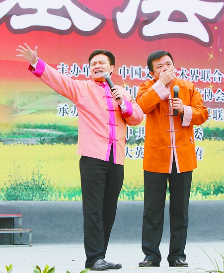 ●劉全和、劉全利:中國文聯(lián)和各協(xié)會開展的“送歡樂下基層”活動,多年來我們一直都積極參加。新一年的“送歡樂下基層”活動已經(jīng)啟動,接下來還有好幾個(gè)協(xié)會的,有時(shí)間我們一定會去,雖然很辛苦,但是也樂在其中!