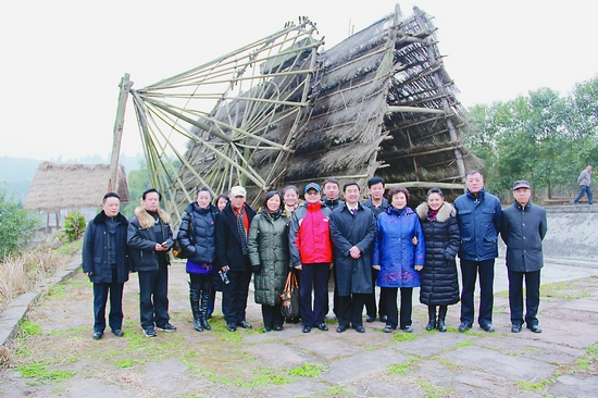 藝術(shù)家參觀完卓筒井深鉆汲制流程后在曬壩留影