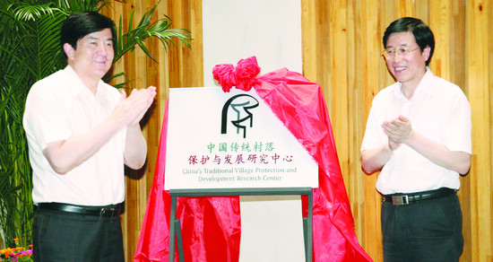 由中國民協和天津大學共同設立的中國傳統村落保護與發展研究中心于6月4日在天津大學馮驥才文學藝術研究院舉行成立暨揭牌儀式。中國文聯黨組副書記、副主席李屹,文化部副部長董偉,天津大學校長李家俊,中國文聯副主席、中國民協主席馮驥才,住建部村鎮司司長趙暉,文化部非遺司司長馬文輝,中國民協分黨組書記、駐會副主席羅楊,中國民協副主席曹保明、潘魯生、劉華,顧問鄭一民、夏挽群、余未人、劉鐵梁、常嗣新,專家劉錫誠、宋兆麟、向云駒、陳志華、阮儀三、孔桂儀以及中國民協副秘書長張志學、呂軍等相關部門負責人出席成立儀式。