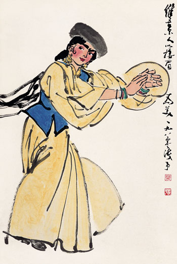 維吾爾人以接眉為美(中國畫) 1980年 葉淺予