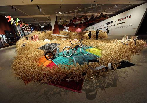 ????從世界知名品牌到具有濃郁中國特色的竹工藝,從用十余萬雙竹筷子搭起長龍陣到利用“空客”技術(shù)制造的塑料打印自行車,還有上海世博會(huì)英國館設(shè)計(jì)者托馬斯·赫斯維克制作的“陀螺椅”、荷蘭90后設(shè)計(jì)師昆汀·德·考斯特設(shè)計(jì)的“枳橙”榨汁器、用“可樂”充電的手機(jī)、收音機(jī)牙齒、納米冰淇淋車、人工肉食、細(xì)菌顏料、音樂植物……充滿智慧的設(shè)計(jì)讓人連連稱奇。