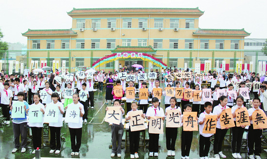 據北京朝陽區青少年活動中心、活動管理中心主任郭蘭英介紹,中心自開展校內外學生社團共建工作以來,中心書法學校先后與區內職高、中學、素質教育示范小學、農村小學簽約共建書法社團,取得了階段性的成果,對落實區內中小學開展書法課程起到了積極的促進作用。定辛莊小學校長馮繼炎介紹,本校書法社團活動起步較晚,但在不到一年的時間里,三至六年級百余名學生對書法產生濃厚的興趣,孩子們不再是被動學習,而是積極主動地駐足在書法教室。學校在校舍緊張的情況下,為學生提供開放的書法教室,學生利用午間休息時間自覺練習書法,為校園注入了新的學書風尚。校內多名班主任老師也受益于書法社團,他們被孩子們的學書熱情感染,拿出自己課余時間學書法,并把書法與語文教學有機的結合起來,在教學中培養孩子們學習的興趣。學校正著力推行“家校合作”的方法,引導家長和學生共同學習,逐步探索出讓書法引領學校發展的新思路。