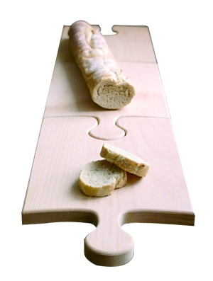 很多人在冷餐會上都會遇到這種情況,一手拿餐盤,一手拿酒杯,這樣我們就只能在餐桌附近活動了。而有了這個拼圖樣式的餐盤,我們就可以把食物直接放在上面,一側的小孔正好可以用來放高腳杯,搞個壽司芥末葡萄酒什么的,即使在冷餐會上也會顯得很從容。更加實用的是,如果食物較多,我們可以把兩塊拼圖拼在一起。而且它是用原木制作的,用來當切菜板也不錯。
