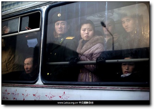 拍攝作品:金正日逝世一周年,搭乘公交車的朝鮮民眾,平壤。