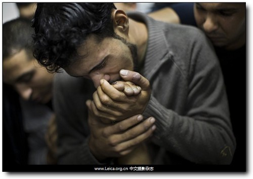 拍攝作品:一名巴勒斯坦男子在輕吻以軍轟炸中死去的親人,加沙地帶。