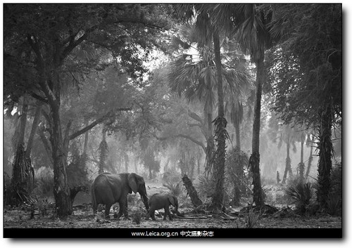 拍攝作品:贊比亞國家公園中的母象與小象。