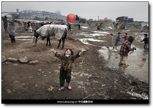 拍攝作品:“在難民營玩耍的小女孩,阿富汗?!?/p>