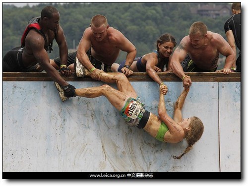 拍攝作品:“Tough Mudder 比賽中,4名參賽者在幫助另一名參賽者逾越障礙?!?/p>