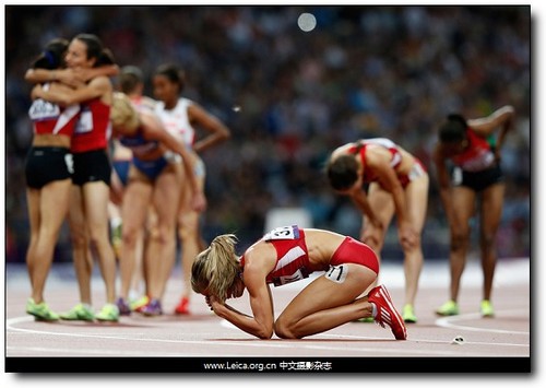 拍攝作品:倫敦奧運會女子1500米長跑決賽后,落敗的美國運動員 Morgan Uceny 跪在跑道上哭泣,英國。