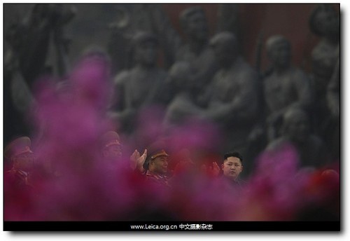 拍攝作品:“軍方慶?;顒又械某r領導人金正恩”。