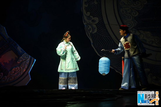 據了解,首屆北京曲劇藝術節的四出劇目,兩出是在中國政法大學禮堂演出,即1月11日、12日登臺的《正紅旗下》和1月14日、15日亮相的《“鄉”約青春》;而另外兩出——《少年天子》和《煙壺》,則于1月16日至24日期間深入到昌平區的鄉鎮和當地駐軍營區,各演兩場。四臺戲里,除了《“鄉”約青春》是由99級的郭曾蕊和08級的張弛、單斌兩屆大學生主演,另三出的主演都是清一色的08級的新人——《正紅旗下》由汪鵬、宋潔分別主演“我”(幼年老舍先生)的父親和母親;《少年天子》由張弛主演福臨,楊鈅、趙弘主演烏云珠,王璐、崔婉主演孝莊太后;《煙壺》由彭巖亮主演聶小軒,洪嘉利、劉暢主演柳娘,單斌飾烏世寶,胡優飾壽明。為了保證演出質量,該團還特別邀請了曾教授學生們的部分藝術家張紹榮、盧雪文、盛國生、趙國來等,為青年演員演出前再度指點,演出時臺側把場。