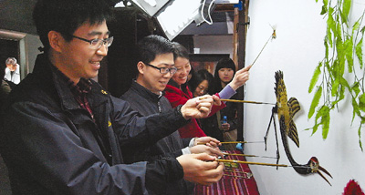 4月18日,游客自己動手體驗皮影戲。當日,北京市西城區啟動什剎海阜景街人文生態文化深度體驗系列活動。人們在酒吧一條街、四合院、皮影主題旅店流連,感受歷史與時尚的碰撞和古都特有的韻味。