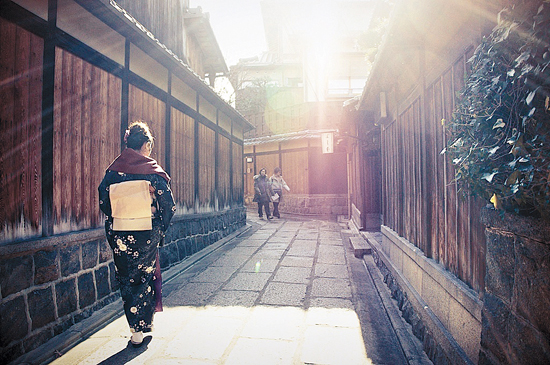 夜晚的京都很寧靜。尤其在遠離馬路的居民區,燈光暗淡,行人稀少,這又使寧靜中透出幾分冷清。
