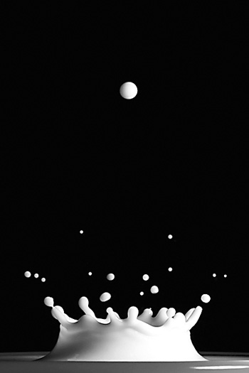 在國外,像我一樣癡迷于液體高速攝影的愛好者被稱為“Dropper”。每個人都有著從簡單入門、嘗試模仿、逐漸摸索竅門到精心創作的歷程。其中最為經典的模仿范本就是牛奶皇冠,我視其為液體攝影入門嘗試的典范。在手工拍攝皇冠時,不但磨練拍攝技巧,更是對耐心的培養。第一次捕捉到皇冠形態的欣喜,也唯有拍攝者自己能夠體會。