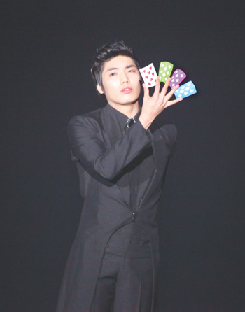 炫黑的屏幕上綴著點(diǎn)點(diǎn)星光,現(xiàn)場(chǎng)甚至察覺不到呼吸的聲響,一切似乎都靜止了,只有那屏幕上緩緩移動(dòng)的光亮預(yù)示著即將發(fā)生著什么。這時(shí)伴隨著有別于一般魔術(shù)表演勁爆而有節(jié)奏的音樂而來的舒緩悠揚(yáng)的音樂,一襲黑色西裝的韓國(guó)魔術(shù)師柳豪鎮(zhèn)出現(xiàn)在舞臺(tái)中央,現(xiàn)場(chǎng)頓時(shí)一陣騷亂,掌聲、口哨聲告訴人們他的粉絲真是不少。觀眾逐漸從其干凈性感的外表吸引中回過神來,此時(shí)舞臺(tái)上撲克牌已散落一地。撲克牌在他纖細(xì)的指尖時(shí)有時(shí)無、時(shí)多時(shí)少,轉(zhuǎn)瞬又變了顏色,沒有大型的輔助道具,只有一雙手,卻能讓撲克牌如此的靈動(dòng),躍然于手指之上。魔術(shù)師臉上的表情也隨著撲克牌的變換時(shí)而喜悅,時(shí)而憂郁,一切都是那么的相得益彰、遙相呼應(yīng),觀眾不禁驚嘆:哇,原來魔術(shù)可以這樣美!魔術(shù)不僅是神秘的藝術(shù),更是唯美的藝術(shù)。